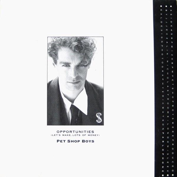 И: Оригинальная версия «Opportunities» была записана при помощи Джея Джезалика (J. J. Jeczalik), клавишника группы The Art of Noise, чьё творчество нравилось участникам Pet Shop Boys. Странный, будто скрежещущий звук, послуживший основой для ритма, - его рук дело. Процесс записи отнял много времени, денег (какая ирония) и сил, но сингл был готов и выпущен. Его сопровождал первый видеоклип дуэта, в котором Лоу расхаживает по подземному гаражу, а Теннант в образе этакого еврея материализуется в прямоугольном отверстии в полу, прямо перед припаркованным Кадиллаком. Нет, на такое, конечно, лучше посмотреть.